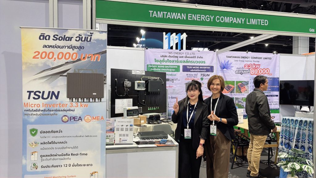 นอกจากนี้ ภายในบูธยังมีการให้คำปรึกษาเกี่ยวกับการออกแบบระบบโซลาร์ การลดค่าไฟฟ้า รวมถึงการเลือกใช้อุปกรณ์ให้เหมาะสมกับลักษณะการใช้งานจริง โดยมีผู้ให้ความสนใจเข้าร่วมเยี่ยมชมและสอบถามข้อมูลเป็นจำนวนมากตลอดทั้ง 3 วันของการจัดงาน